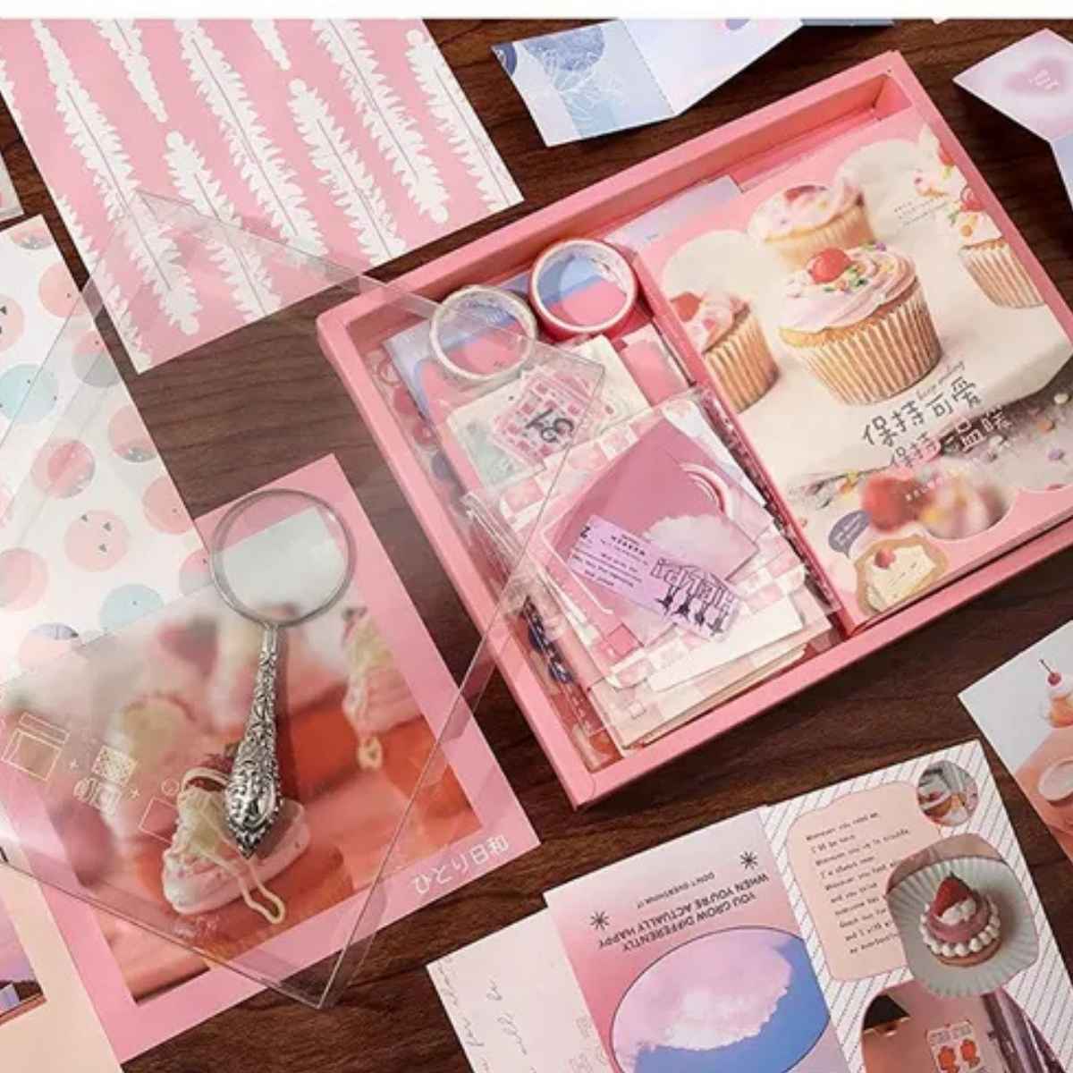Inside, you’ll find an A6 softcover journal, beautifully coordinated papers, stickers, washi tapes, and die-cut designs inspired by vintage letters and soft brown hues. Everything is packed in a charming gift box, making it a lovely present for craft lovers, stationery fans, and journaling enthusiasts.